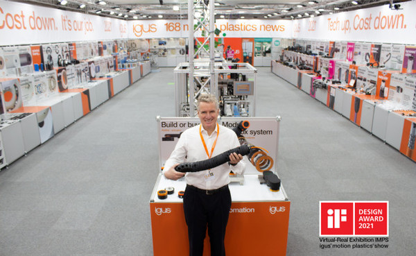 ▲ 2021 iF 디자인 어워드에서 디자인 본상을 수상한 igus 버츄얼 부스. igus CEO 프랑크 블라제가 신제품 TRX 로봇 체인을 소개하고 있다독일 첨단 폴리머 부품 기업 이구스가 코로나 팬데믹에도 불구하고 168종의 신제품을 출시했다. 이구스는 코로나19로 인해 2020년 영업 실적이 4.8 % 감소한 반면 물류 자동화 및 디지털 혁신에 투자를 확대함으로써 30 % 증가한 온라인 판매 실적을 달성했다.