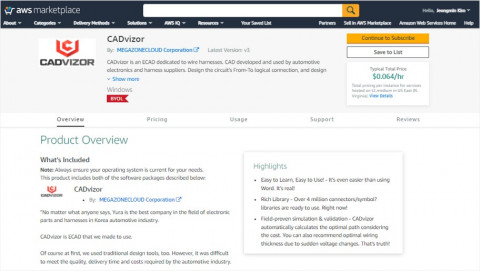 이번에 인증받은 AWS 파트너 소프트웨어 패스는 비즈니스 운영 시 필요한 소프트웨어·데이터·서비스를 구매하고 배포, 관리할 수 있는 자격이다. AWS 마켓플레이스(AWS Marketplace)를 통해 AWS 파트너 업체가 소프트웨어를 제공할 수 있도록 한다. CADvisor는 AWS 마켓플레이스에 등재돼 AWS 고객이라면 누구나 손쉽게 설치해 소프트웨어를 사용할 수 있다.