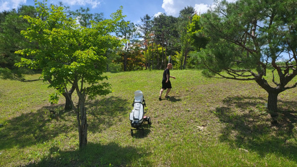 ▲ 스마트골프가 개발한 캐디 로봇 ‘스마트 캐디봇’스크린 골프 전문 기업 스마트골프는 추종 기능을 갖춘 캐디 로봇인 ‘스마트 캐디봇’을 개발했다고 밝혔다. 스마트 캐디봇은 일정한 거리를 두고 골퍼를 추종하는 1인용 로봇으로 기술·기능보다는 한국 지형에 맞춤화해 있으면서, 안전을 최우선에 두고 개발된 캐디 로봇이다.