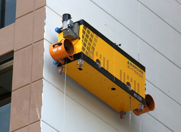 기존 대부분의 외벽 도장 작업은 현장 근로자가 달비계 를 통해 높은 현장에서 직접 진행해 고위험 작업으로 분류됐지만, 외벽도장로봇의 적용을 통한 작업 무인화로 외벽 도장 작업 시 추락재해를 미연에 방지할 수 있다.