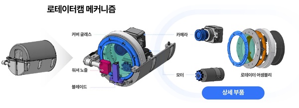 특히 커버 글라스를 활용한 센서 클리닝 기술이 공통으로 내부에 습기가 차는 문제를 갖는 데 비해 로테이터캠 기술은 커버 글라스를 회전시킴과 동시에 내부 프로펠러 날개로 바람을 일으켜 습기를 제거할 수 있다.