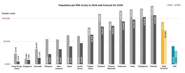 쿠시먼앤드웨이크필드 아시아태평양 데이터센터 그룹 인사이트·분석 부문 총괄 프리테시 스와미(Pritesh Swamy)는 “대부분의 아시아태평양 시장은 데이터센터 인프라가 여전히 크게 부족한 상황으로, 메가와트당 평균 인구 수가 35만 명을 넘는 반면, 미국은 약 3만 명 수준에 불과하다. 해당 수치는 아시아태평양 지역 각국이 경제 성장과 인구 증가에 발맞춰 인프라 확충에 적극 나서고 있음을 보여준다”고 밝혔다.
