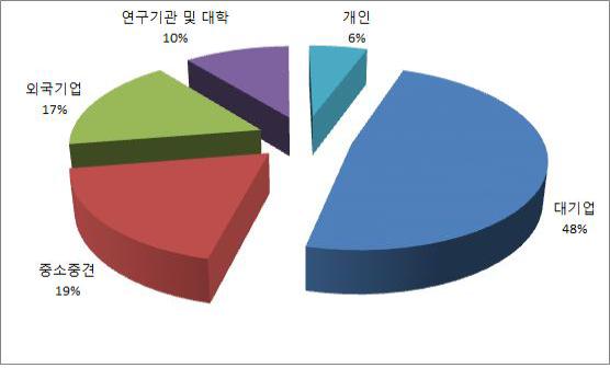 출원건수(비중) | 83(48%) | 32(19%) | 29(17%) | 18(10%) | 10(6%) | 172(100%) |