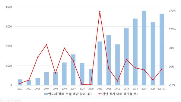 ▲ 국내 반도체 장비 연도별 수출액