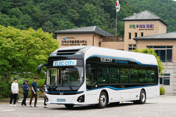▲ 전국 4개 국립공원에서 1달간씩 순차적으로 관광객 셔틀버스로 시범 운영되는 현대자동차 친환경 전기버스 ‘일렉시티’