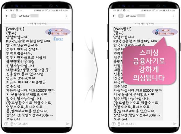 이에 AI가 휴대폰 문자 메시지를 분석하여 스미싱 여부를 판별함으로써 소비자가 스미싱에 현혹되어 발생하는 금융사기 시도가 사전 차단될 것으로 기대된다.