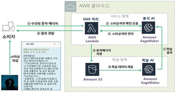 이에 따라 금융감독원, KB국민은행 및 아마존웹서비스는 협업팀을 구성하고 약 8개월 간의 공동 연구와 파일럿 테스트를 거쳐 스미싱 방지 AI 알고리즘 개발 완료하였다.