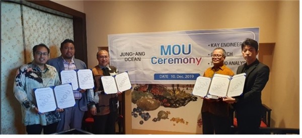▲ 중앙오션은 10일 말레이시아 국영 에너지기업인 페트로나스 산하 정부 등록업체인 OBM테크닉, 테크노 어날리시스 및 로컬 조선소인 케이 엔지니어링사와 조선기자재 수출을 위한 업무협약(MOU)을 체결했다.중앙오션은 10일 말레이시아 국영 에너지기업인 페트로나스(PETRONAS) 산하 정부 등록업체인 OBM테크닉(OBM TECHNIC SDN. BHD), 테크노 어날리시스(TECHNO ANALYSIS SDN. BHD) 및 로컬 조선소인 케이 엔지니어링(KAY ENGINEERING SDN. BHD)사와 조선기자재 수출을 위한 업무협약(MOU)을 체결했다.