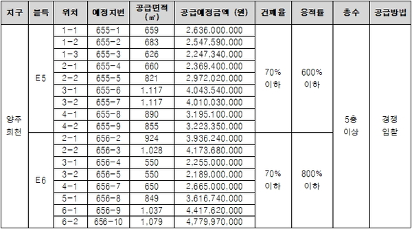 LH가 양주 회천신도시 내 일반상업용지 17필지(14천㎡, 553억 원)를 경쟁입찰 방식으로 공급한다고 13일 밝혔다.