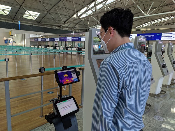 인천공항 1터미널과 2터미널 3층 출국장에 로봇과 키오스크를 활용한 비대면 발열체크 서비스를 시범 도입하였다.
