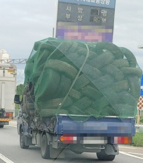 ▲ 폭우와 강풍 시에는 앞차와의 안전거리를 충분히 확보해야 하며 과적 화물차나 대형차를 앞뒤에 두고 주행하는 것은 위험하다.