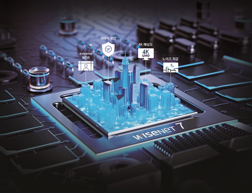 ‘와이즈넷7’ 보안 카메라는 한화테크윈이 자체 개발한 영상처리 반도체 칩 ‘와이즈넷7’이 내장된 제품으로, 각종 영상보정 기능을 통해 세계 최고 수준의 선명한 화면과 기존 제품 대비 한층 강화된 사이버보안 기능을 제공한다. 영상처리 반도체 칩을 자체 개발할 수 있는 기술력을 가진 보안 업체는 세계적으로도 한화테크윈을 포함해 2개 업체 뿐이다.
