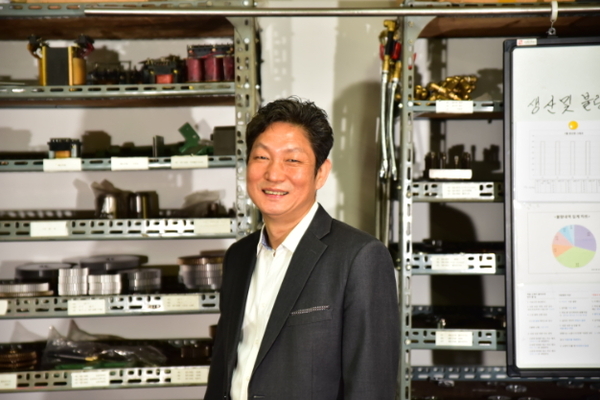 ▲ 이문섭 대표는 기존 범용원통연마기를 자동화할 수 있다면 막대한 인건비 절감과 생산성 향상으로 기업에 큰 도움이 되리라 확신하고 2012년 기술개발에 본격 나섰다.또, CNC 연마기 가격대비 저렴하고 중고 원통연마기에도 부착할 수 있어 장비 교체에 대한 부담이 없다. 특허등록 제품으로서 현재까지 국내외에 경쟁제품이 없는 상태다.